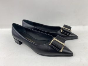 ゼリは黒の牛革製で、光沢のあるゴールドトーンのロゴバックル付きリボンが特徴です。